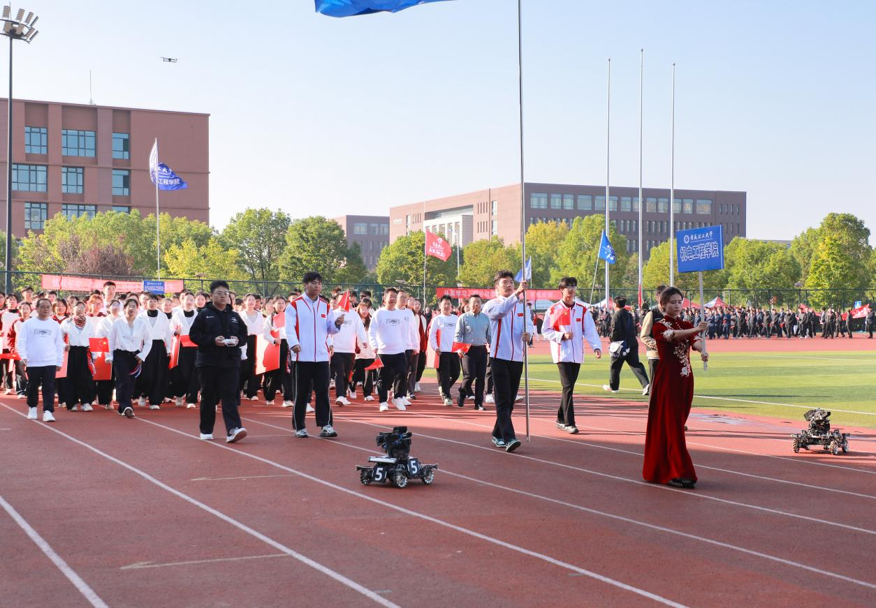 伴随着激昂的《运动员进行曲》,国旗、校旗护旗队迈着铿锵有力的步伐率先入场,紧随其后的裁判员方队、各参赛代表队方阵依次入场,他们着装整齐,口号嘹亮,或挥舞彩旗,或高举横幅,或摆出创意队形,将青春活力与专业特色完美融合,充分展现了广大师生锐意进取、蓬勃向上的精神风貌,为秋日校园注入青春活力。