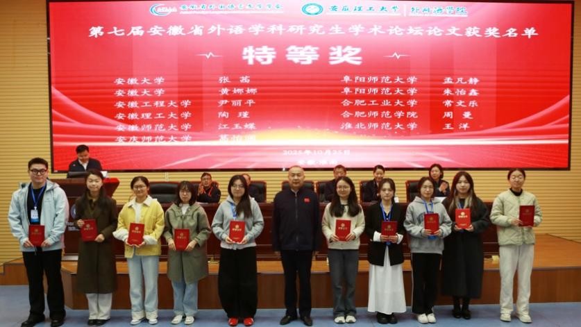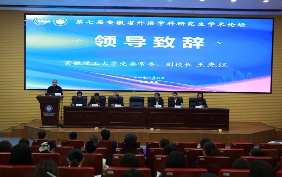 10月24日至25日,由安徽省外国语言文学学会、安徽省外国语言文学类专业合作委员会主办,我校外国语学院和安徽理工大学淮南子文化数字化传承与发展重点实验室承办的第七届安徽省外语学科研究生学术论坛在我校成功举行。校党委常委、副校长王先江出席开幕式并致辞。