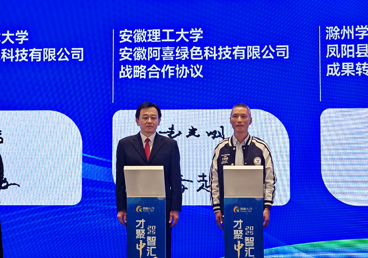 赵光明代表学校与安徽阿喜绿色科技有限公司签署校企合作协议。双方将围绕绿色科技、环保技术等领域开展深度合作,共同推动科技成果转化与产业化,助力凤阳县打造绿色低碳循环发展的产业生态。