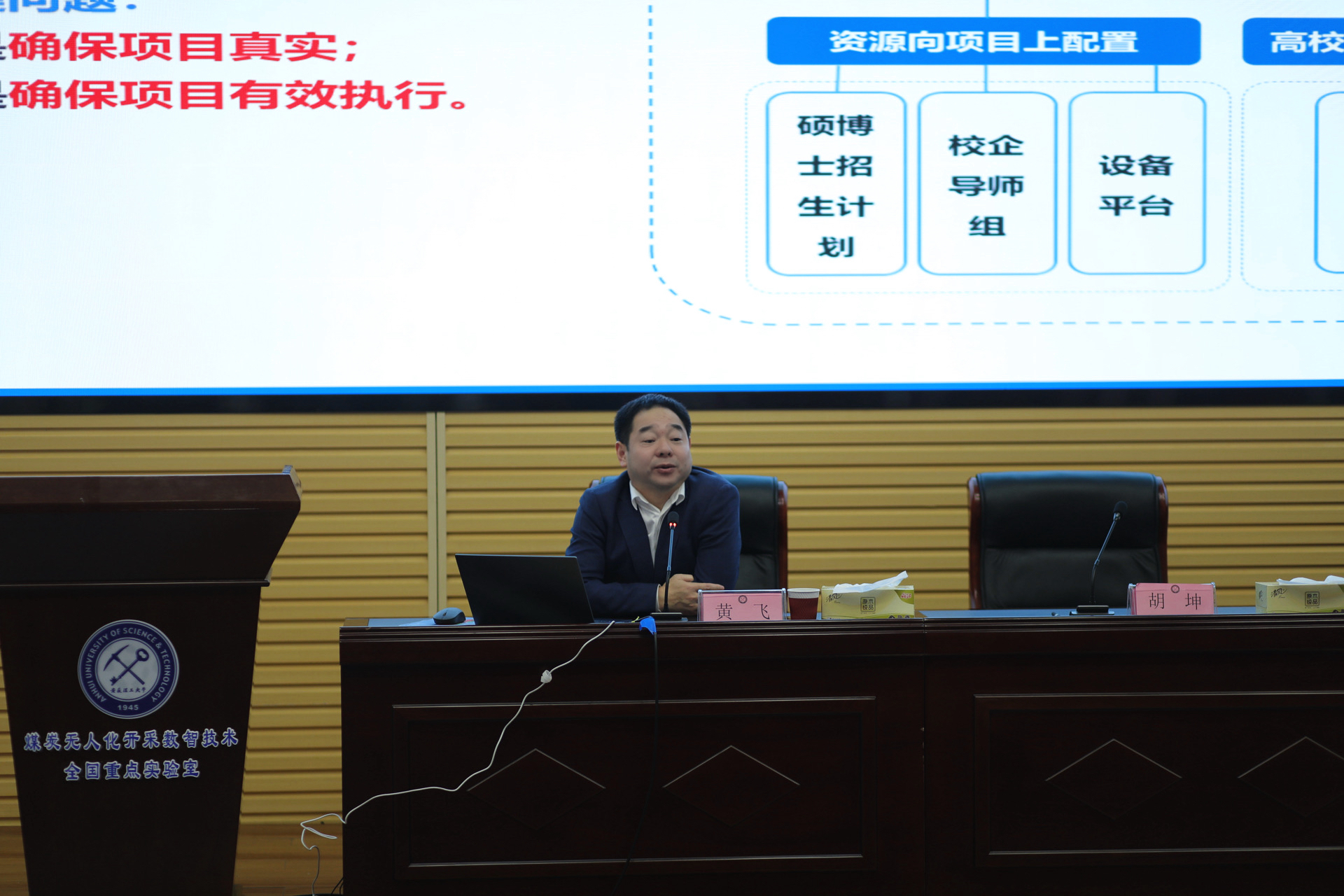 会议特邀教育部安徽高等研究院筹建工作组负责人、合肥工业大学研究生院副院长(主持工作)黄飞作题为《基地化、项目制、多主体合作共赢——卓越工程人才培养创新与实践》的专题辅导报告。他从政策背景、实践路径与合作机制等方面,系统阐释了卓越工程人才培养的前沿理念与创新模式,重点分享了基地化建设、项目制培养、多主体协同等宝贵经验。其报告内容与学校“深化科教产融合”战略高度契合,对优化学科专业结构、提升育人质量具有重要借鉴意义。
