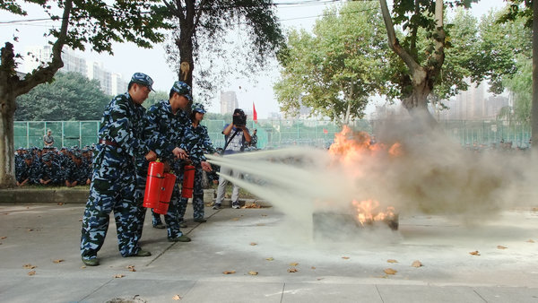为全面提高在校大学生的的火灾应急处理能力,增强消防意识,普及消防知识及消防技能,9月22日,校保卫处先后在北校区、西校区两个校区的军训现场对全校五千余名2015级参训新生组织开展了消防基础知识教育培训。