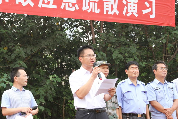9月25日下午,学校在北校区举行2015级新生突发灾害事故应急疏散演习。校纪委书记、应急疏散演习总指挥周峰在现场指挥并观摩了应急演习。