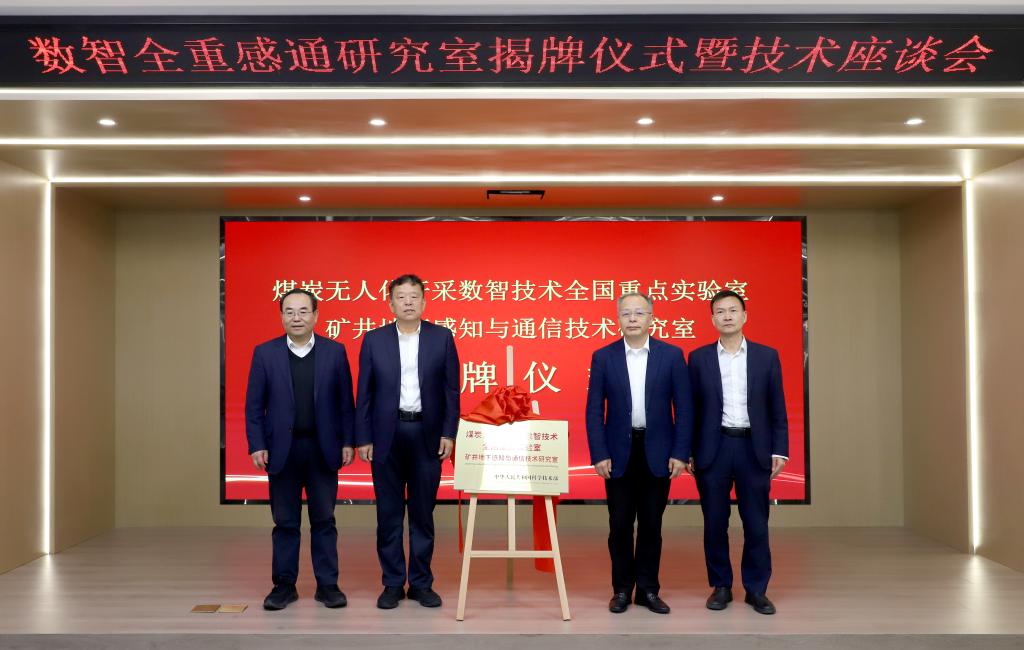 王国法、郭永存、田华、王海波共同为煤炭无人化开采数智技术全国重点实验室矿井地下感知与通信技术研究室揭牌。