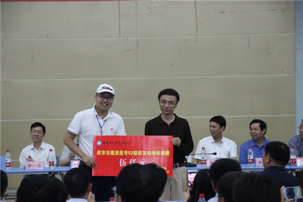 医学院党委书记叶松代表学院接受了95届校友们的捐赠。