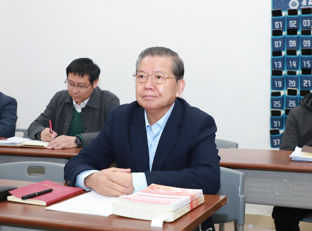 袁亮认真听取了张治萍老师的授课内容,详细记录教学环节设计、案例运用及师生互动情况,密切关注学生的课堂反应,全面了解思政课的教学实况与实际效果。课间,他与师生进行了亲切交流,对授课教师的辛勤付出和学生的课堂状态表示肯定。