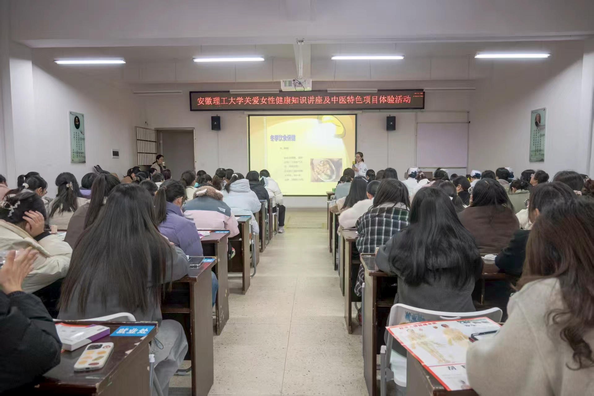 活动现场气氛热烈,内容丰富。董小玉围绕冬季养生保健知识,结合女性常见健康问题,深入浅出地介绍了冬季饮食调理、起居调养、运动保健等方面的知识,并与师生互动答疑,现场掌声不断。
