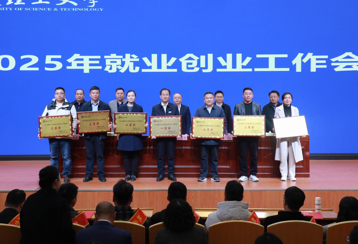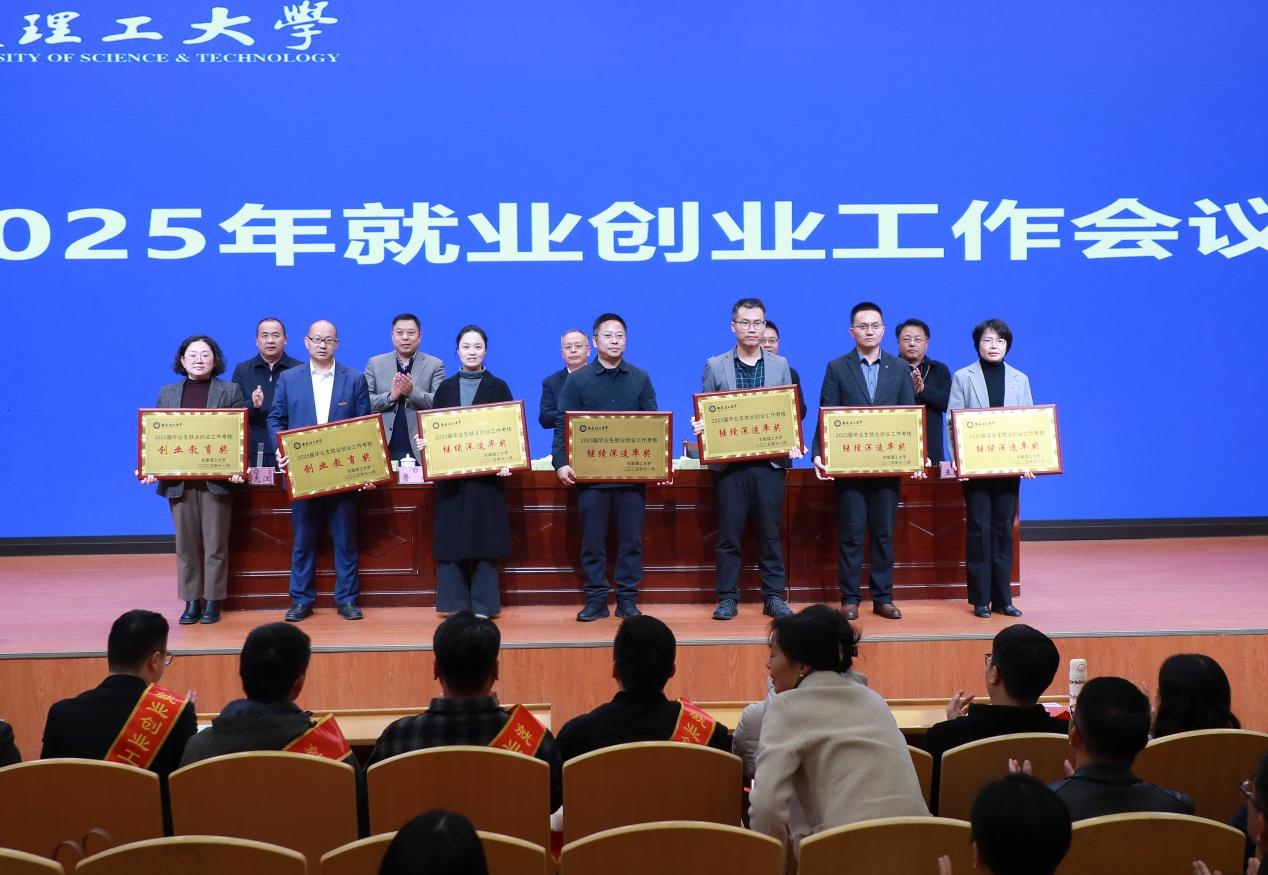 会上,颁发了就业创业工作考核优秀奖、继续深造率奖、创业教育奖以及先进个人奖。
