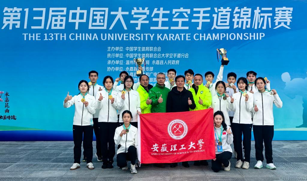 我校空手道队在董刚、曹政玉和李争晖三位教师的带领下,和同济大学、中国人民公安大学、西南交通大学、合肥工业大学等27所高校争夺甲组组手(对打)比赛的21枚金牌。最终我校获得11枚金牌(包揽男、女团体金牌)、2枚银牌、3枚铜牌,奖牌数量和质量再创历届新高。尤其值得一提的是,我校李睿煐同学战胜了今年参加第十五届全国运动会的选手。