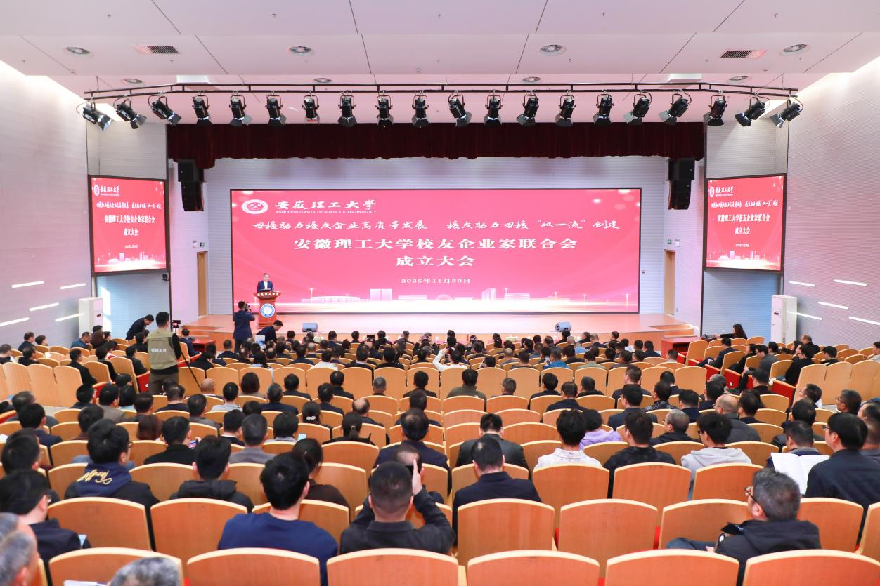 母校助力校友企业高质量发展,校友企业助力母校“双一流”创建。11月30日下午,安徽理工大学校友企业家联合会成立大会在学校舜耕会堂举行。淮南市委副书记、市长张志强,校党委书记郭永存,校党委副书记、校长袁亮院士,淮南市副市长陈长勇,中煤新集能源股份有限公司党委副书记、总经理孙凯,淮河能源控股集团有限责任公司党委副书记汪天祥等80余家校友企业代表共同见证联合会成立。袁亮、煤矿机械制造专业1978级校友高登榜担任联合会名誉会长,矿井建设专业1978级校友杨和荣担任联合会首任会长。校党委副书记、常务副校长余玉刚,校领导鲁超、王献余、王先江、张平松、赵光明、徐良骥出席会议。