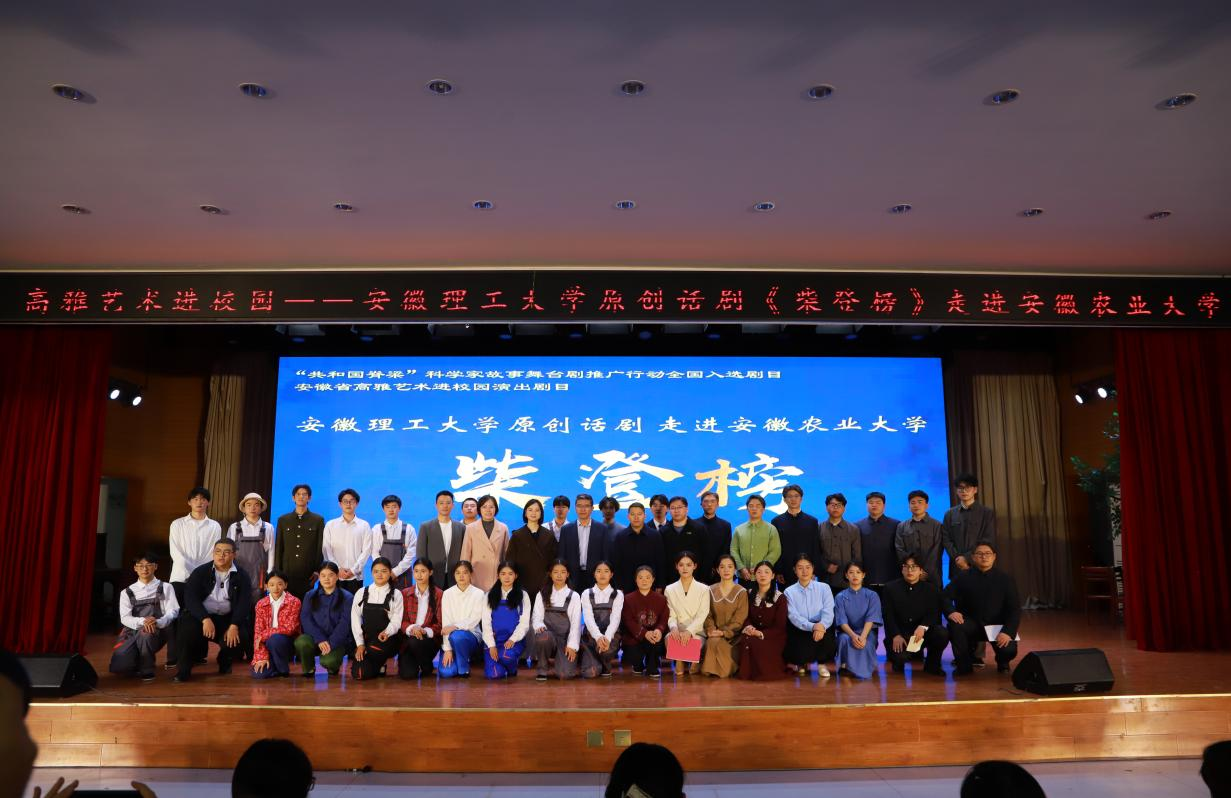 “柴老用一生的不懈坚持,铸就了伟大的煤炭地质事业。参演的经历让我真正理解科学家、敬畏科学家。” 正如剧中柴登榜扮演者、2024级学生周祖光所言,《柴登榜》的巡演之路,亦是科学精神的播种之路。2025年,该剧作为安徽省教育厅主办的高雅艺术进校园演出剧目,先后走进淮南市第二中学、安徽农业大学、安徽中医药大学、宿州学院、安徽中澳科技职业学院,为近3000名师生解读科学大师的精神世界,让更多观众深刻地理解“精学立世、艰苦奋斗”的安理传统,使之真正成为连接高校、传递精神的桥梁。