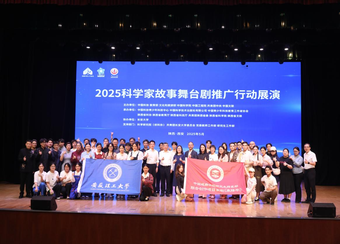 “漆黑的星辰从深邃的泥土下燃起万年的火光,闪耀的星光就是历史最好的言说。”5月,由中国科协、教育部等单位联合主办的2025全国“共和国的脊梁——科学大师宣传工程”在陕西西安隆重启幕。《柴登榜》作为安徽理工大学首场跨省巡演的精品剧目,与来自西北工业大学、上海大学、中国戏曲学院等高校的《袁隆平》《少年黄大年》《永怀之歌》等优秀科学家主题剧目在西安电子科技大学、陕西师范大学、长安大学同台绽放,凭借深厚的精神内涵与精湛的艺术表达,赢得广泛赞誉。