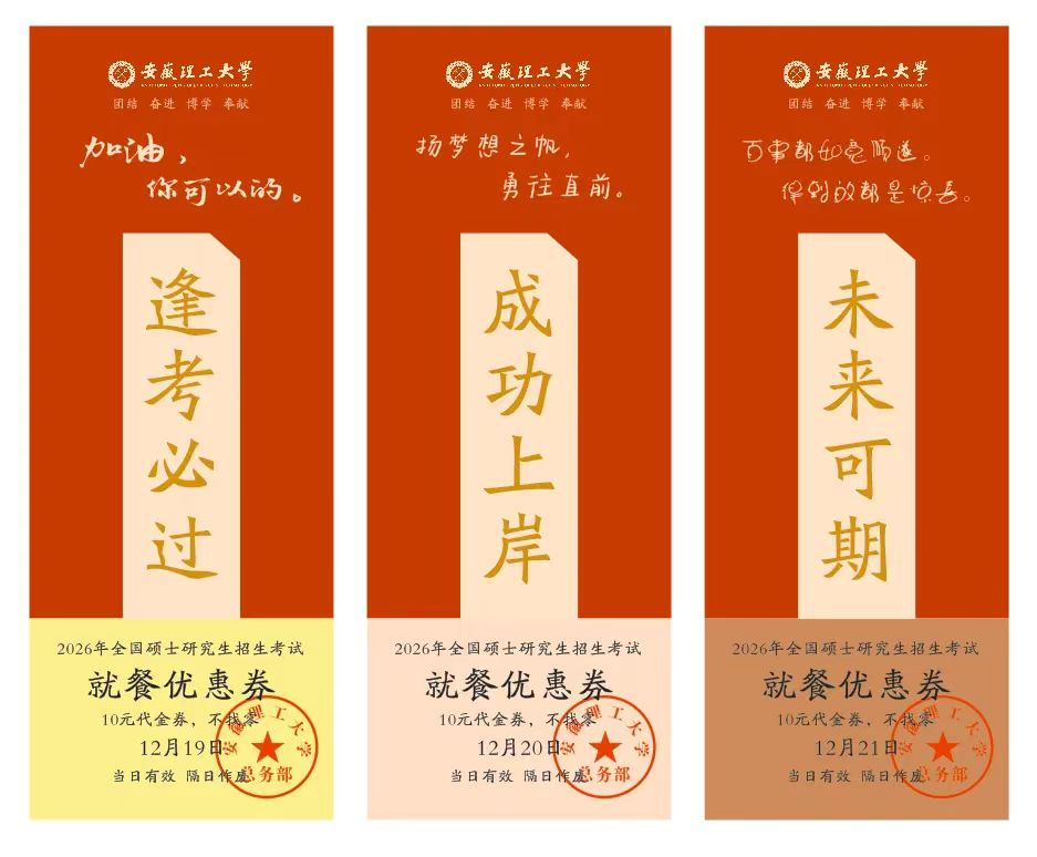 今朝之时,安理学子逐梦研途、执笔赴考,以披星戴月的坚守,直面前路挑战。愿每一份付出皆有回响,他们能突破考验、成功“上岸”,如愿成硕!他日,他们必将以学识为炬、以青春为帆,投身学校“双一流”创建事业,携手铸就安理新的荣光。