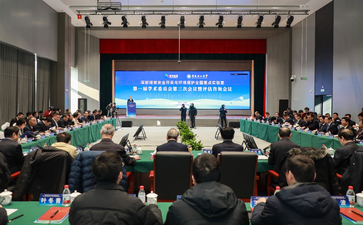 12月27日,深部煤炭安全开采与环境保护全国重点实验室第一届学术委员会第三次会议在淮召开。实验室主任,校党委副书记、校长袁亮院士出席并作进展报告,中国工程院院士彭苏萍、康红普、林君、武强、王双明、王国法、杨春和、张来斌、刘泉声、胡振琪等10余位院士及中国矿业大学林柏泉、徐州工程学院张农等30余位行业专家参加会议。省科技厅党组成员、副厅长姚群,淮南市副市长陈长勇出席会议并讲话。淮河能源控股集团党委书记、董事长、全国重点实验室理事会理事长韩家章,淮南矿业集团总工程师、副总经理、全国重点实验室常务副主任李点尚,校党委常委、副校长张平松、赵光明、徐良骥等出席。