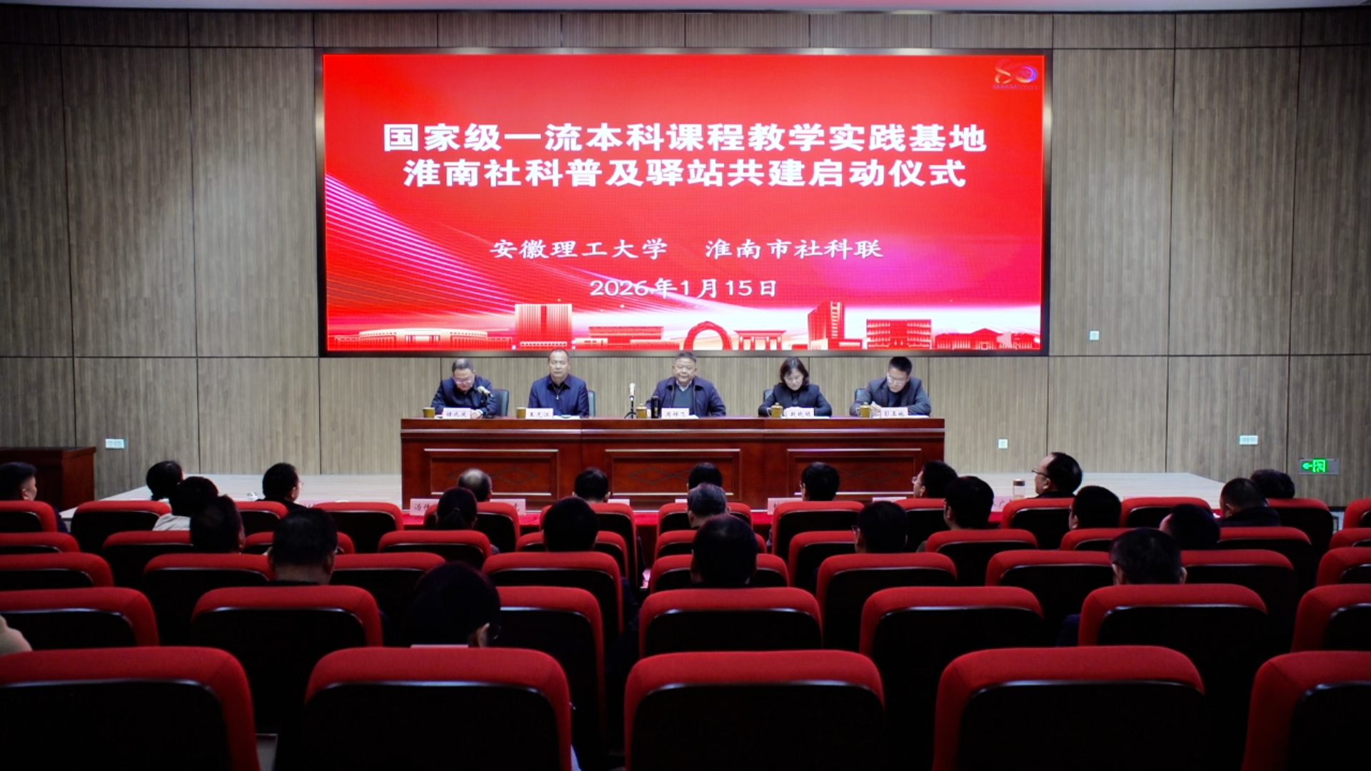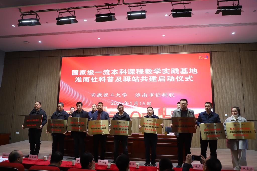 1月15日下午,国家级一流本科课程“思想政治教育文化实践”教学实践基地、淮南社科普及驿站共建启动会在安徽楚文化博物馆举行。安徽省社科联党组成员、副主席周祥飞,淮南市委常委、市委宣传部部长赵晓明出席启动会。校党委常委、副校长王先江出席会议并致辞。启动会由淮南市委讲师团团长、市社科联主席储兆庆主持。