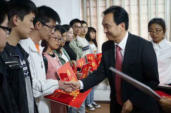 张明旭对北京国华科技集团有限公司设立“国华科技奖学金”,以及一直以来对学校的支持和帮助表示感谢,对获奖学生表示祝贺。他要求获奖同学要常怀感恩之心,加倍努力学习,回报企业、社会和国家的关爱。他勉励同学们要学习“国华精神”,将学业和事业做到极致,要珍惜宝贵的学习机会和良好的学习生活条件,在今后的学习中取得更大的成绩。