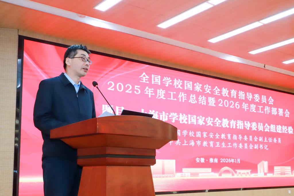 1月10日上午,全国学校国家安全教育指导委员会2025年度工作总结暨2026年度工作部署会在我校党委办公楼一楼报告厅举行。会议第一时间学习贯彻2026年全国教育工作会议精神,立足教育强国建设全局,聚焦国家安全教育实践,直面百年变局加速演进和青少年代际变迁带来的机遇和挑战,谋划研讨2026年工作重点、亮点、突破点。