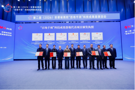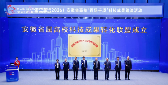 1月17日,第二届(2026)安徽省高校“百场千项”科技成果路演活动在安徽创新馆举行。安徽省教育厅、国资委、工信厅等部门相关领导出席会议。校党委书记郭永存受邀出席活动。
