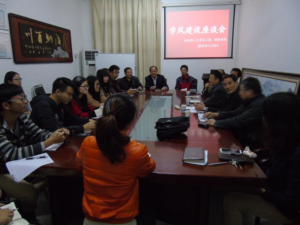 11月6日下午,校关工委常务副主任李西才,关工委委员孙炳英、赛序新、胡光厚、梁修清应邀来到测绘学院,就学风建设与测绘学院师生进行座谈,为学院学风建设支招。校离退休工作处处长桂曙光,学院党委副书记吴军、行政副院长姚嗣宏参加座谈会。会议由院党委书记陈艺主持。