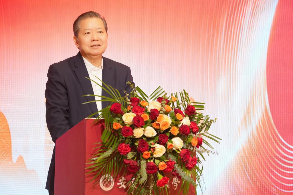 袁亮作学校高质量发展报告。他详细介绍了学校围绕“双一流”创建,聚焦办学特色优势,推出一系列变革性举措,取得一系列重大成就。他指出,学校近年来的快速发展,离不开广大校友一如既往的鼎力支持,也离不开合作伙伴的携手同行。校友与母校、合作方与学校之间的情感纽带日益紧密,形成了双向奔赴、彼此赋能、相互成就的良好生态,为协同发展注入了持久动力。他强调,校友联谊处应积极激活创新动能、赋能产业升级、服务地方发展,真正使校友力量成为助推学校发展的“强引擎”和地方建设的“生力军”。他希望芜湖校友联谊处进一步汇聚校友智慧与力量,深化校地校企资源对接与务实合作,实现母校发展与校友成长同频共振、互利共赢。