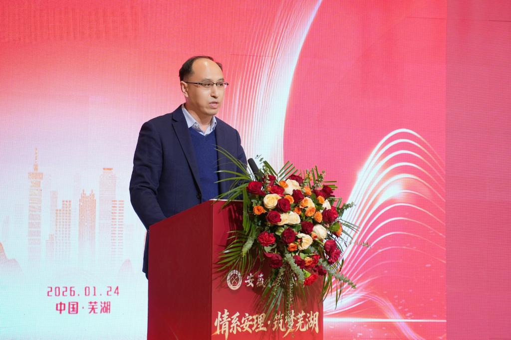 徐良骥在主持大会第二阶段校友科技论坛中指出,校友科技论坛搭建起精准对接、高效沟通的优质平台,实现了母校科研优势、校友资源优势与芜湖产业优势的有机融合,这既是活动的初心所在,更是2026年我们协同奋进、再创佳绩的良好开端!期盼全体安理人心手相牵、同心致远,以“策马扬鞭自奋蹄”的昂扬姿态,共同书写校地繁荣、校友出彩的崭新篇章!