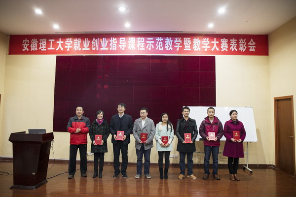 毕业生就业工作处处长谢振安主持会议,副处长岳丹宣读了《关于表彰2015年度就业创业指导课程教学大赛获奖教师的决定》。