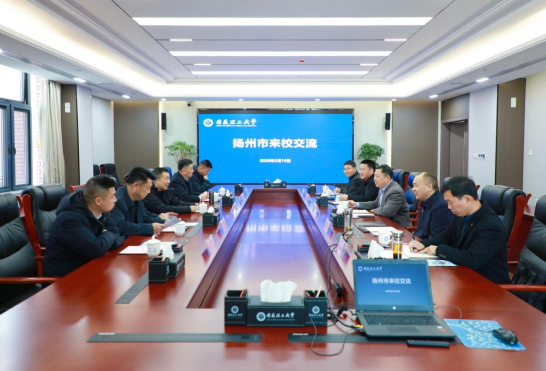 3月10日,扬州市委常委、统战部部长丁四海一行来校洽谈人才科技等方面合作。校党委常委、副校长鲁超、王先江出席座谈交流。