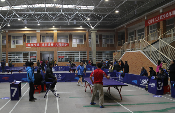 11月27日至29日,由校工会、教职工乒乓球协会主办,体育部承办的安徽理工大学2015年教职工乒乓球团体赛在校本部大学生素质教育中心举行。来自各分工会和离退休工作处的16支男队、8支女队,160余名教职工参加了比赛。