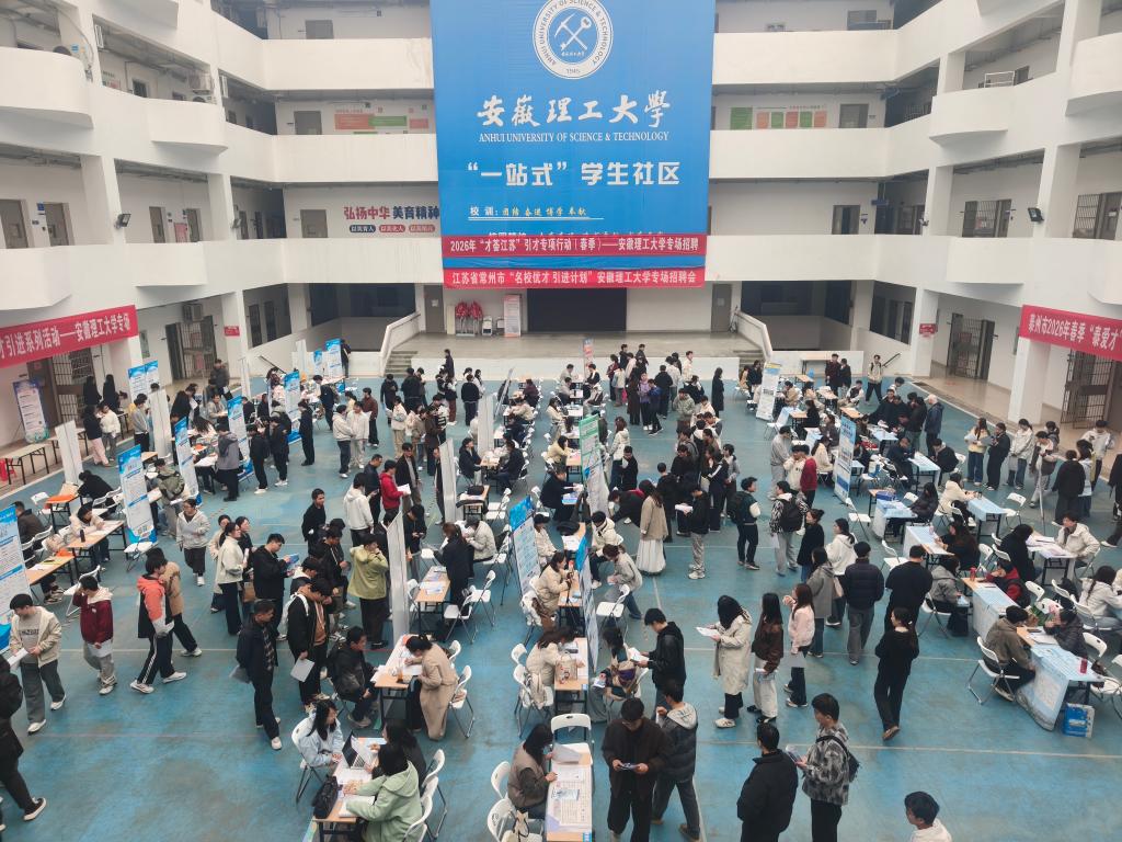 3月24日下午,由学校和江苏省常州、淮安、泰州三市共同组织的“2026年‘才荟江苏’引才专项行动(春季)——安徽理工大学专场招聘”在厚德馆大厅成功举办。