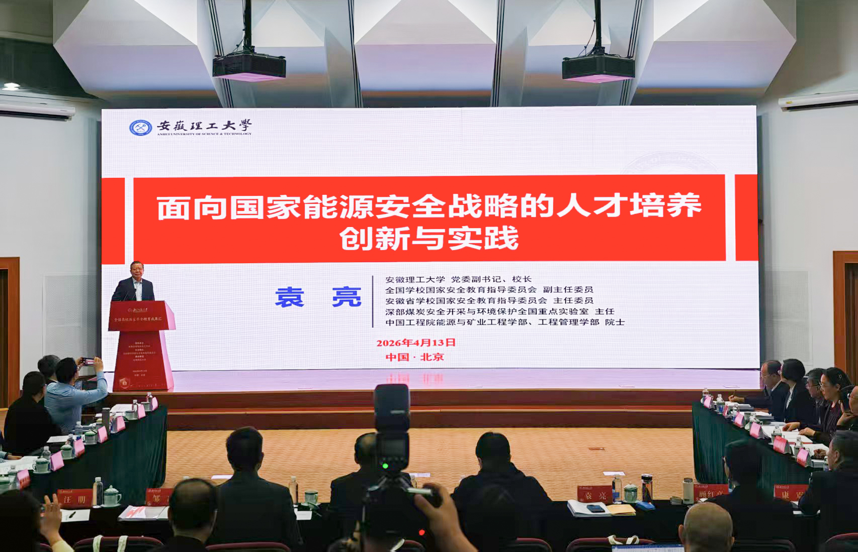 4月13日上午,全国高校国家安全教育成果汇在北京师范大学英东学术会堂举行。全国学校国家安全教育指导委员会副主任委员,校党委副书记、校长袁亮院士应邀出席,并以“面向国家能源安全战略的人才培养创新与实践”为题作主旨报告,为全国高校国家安全教育提供了鲜活范例。校党委常委、副校长徐良骥参加活动。