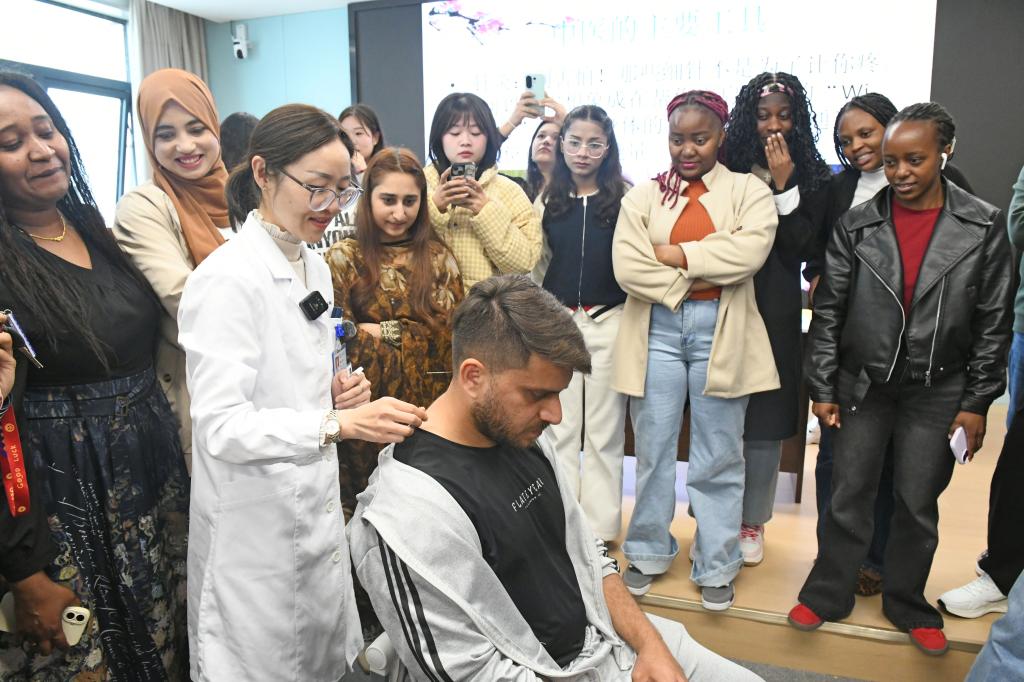 几位“勇士”更是鼓起勇气,主动感受了针灸的神奇。当细如发丝的银针轻轻刺入穴位,原本紧张的巴基斯坦的留学生法里脸上逐渐浮现出惊喜的神情——“不疼!是一种很轻松的感觉!”