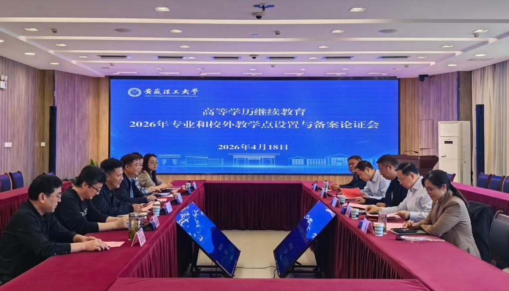 4月18日,我校高等学历继续教育2026年专业和校外教学点设置与备案论证会在舜耕苑二楼会议室召开。安徽大学继续教育学院院长周伟斌、安徽医科大学继续教育学院院长刘从云、安徽建筑大学继续教育学院院长李伟、煤炭开采国家工程技术研究院执行院长王传兵、中煤新集能源股份有限公司副总工程师傅先杰等应邀担任论证专家并出席会议。
