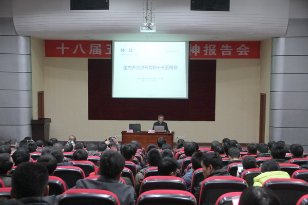 颜事龙在主持报告时指出,学习贯彻党的十八届五中全会精神是当前一项重要的政治任务,全校各级党组织要按照校党委《关于深入学习贯彻党的十八届五中全会精神的通知》、《关于组织开展党的十八届五中全会精神进校园活动的通知》的部署,认真开展学习活动;要把认真贯彻全会精神、落实“十三五”规划建议对教育工作提出的各项任务,与学习贯彻习近平总书记系列重要讲话精神结合起来,与科学制定学校“十三五”规划结合起来,与深入推进特色高水平大学的建设任务结合起来,加快学校建设与发展,为全面建成小康社会做出应有贡献。