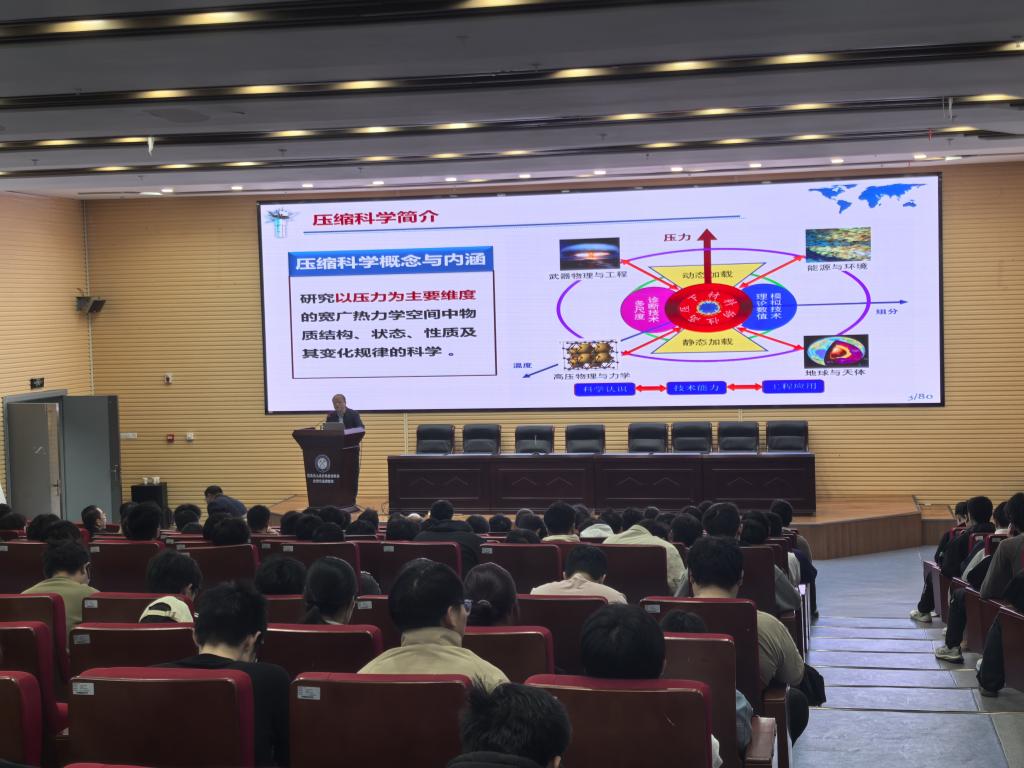 吴强院士从强动载条件下材料的响应角度出发,指出压力是物质科学研究的崭新维度,高压极端条件下的物质科学——压缩科学,正孕育着巨大的原始创新,拥有广阔的应用前景。报告阐述了压缩科学在前沿基础学科领域和国家安全领域的价值,以及实现其价值的能力需求;厘清了压缩科学体系化发展态势,总结了国际上压缩科学发展经验;分析了中国前期探索实践情况和存在的差距,提出了后续发展的思考。在交流问答环节中,吴强院士与我校师生就动高压生成技术、物态方程建立等问题进行了深入的讨论。吴强院士报告内容精彩纷呈,现场气氛热烈,得到师生们一致好评。