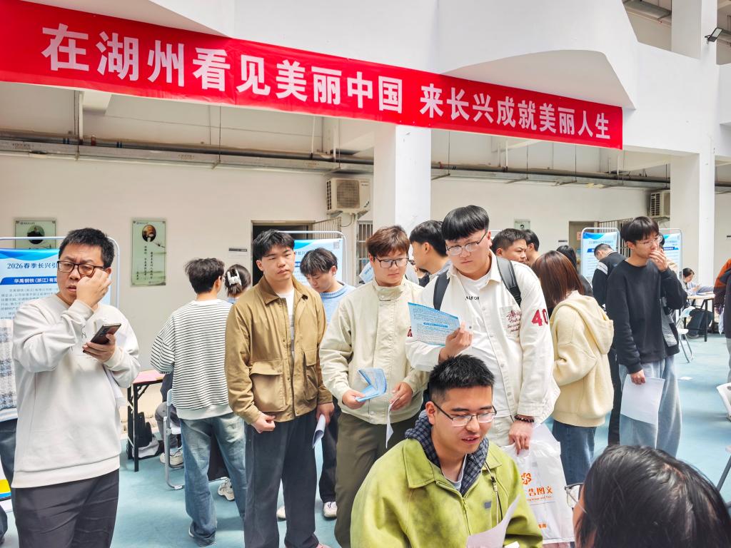 浙江长兴、安吉两地人社部门组团参加招聘。据悉,学校自春季校园就业市场启动以来,已先后邀请合肥、扬州、宿州、桐城等地开展大型政策推介会,重点为毕业生解读就业政策、岗位需求及职业发展路径,就业对接成效显著。