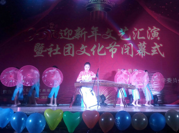 大学生艺术团表演的古筝伴舞《春到湘江》