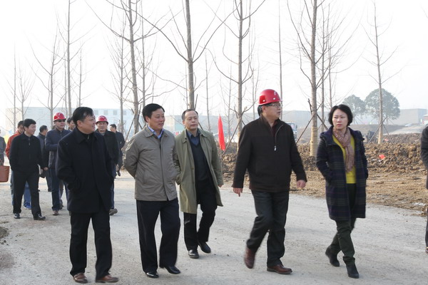 王宏、郭永存一行先后来到南大门、核心区、东组团施工工地,仔细察看了楼宇、道路、大门和围墙等建设情况,了解树木种植等绿化施工情况。