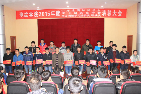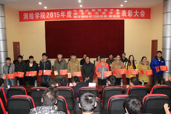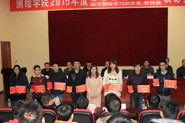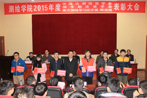 徕卡励志奖学金由合肥海拓勘测设备有限公司2011年设立,2015年共有11名学生获奖;中海达测绘奖学金由广州中海达卫星导航技术股份有限公司合肥分公司2014年设立,2015年共有9名学生获奖;南方测绘学习进步奖、帮扶奖奖学金由南方测绘仪器有限公司2015年设立,2015年共有40名学生获奖。