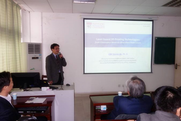 Jin研究员作了题为“Laser-based Precision Additive Manufacturing (3D Printing)”的报告,重点阐述了飞秒激光测量技术在3D打印中的应用、叠层制造(Additive manufacturing)的优势、选择性激光熔化(Selective Laser Melting , SLM)金属粉末的快速成型技术,并指出未来3D打印技术的发展方向和急需解决的关键问题。