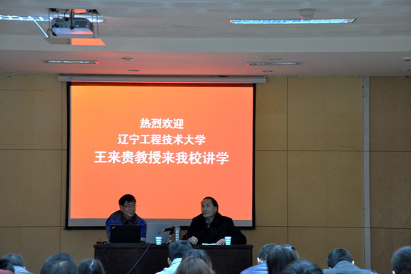 在上午的报告会中,王来贵为相关学院师生作了题为《岩体力学的哲学思考》的学术报告。他结合自身从事岩体力学的科研成果和经验,围绕岩体力学存在问题与系统哲学研究思路、岩体与岩体工程系统的边界、岩体工程系统结构研究思路、岩体与岩体工程结构的内外因关系、岩体工程系统的演化及其动力、岩体力学系统的演化标度、岩体系统的控制等方面内容进行阐述和讲解。讲座内容丰富、具有极高的科学性、知识性和实用性。