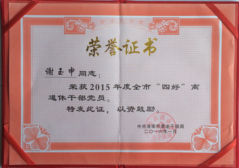 3月1日上午,淮南市组织部长会议暨基层党建和老干部会议在淮南市老年大学会议厅隆重举行。我校荣获“2015年度淮南市老干部工作优胜单位”。我校北区离退休直属党支部荣获“全市‘五好’离退休干部党支部”荣誉称号,离休党员谢玉申同志荣获“全市‘四好’离退休干部党员”荣誉称号。