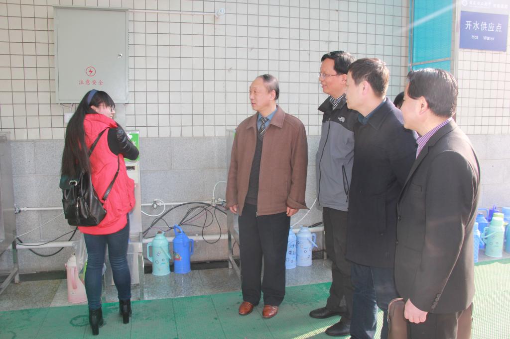 后勤管理处处长洪江如,后勤集团党委书记廖学东,后勤管理处副处长徐强,后勤集团副总经理张利东、李勐等陪同调研。
