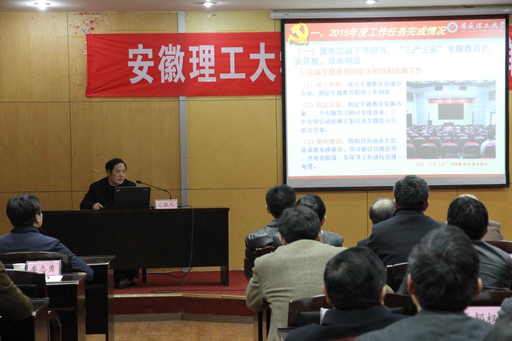 3月17日,学校在图西会议室召开处级单位2015年度工作考核公开述职测评会议,校长郭永存,副校长叶醒狮,党委副书记王洪,副校长王其东、孟祥瑞,纪委书记周峰出席了会议。大会由郭永存主持。
