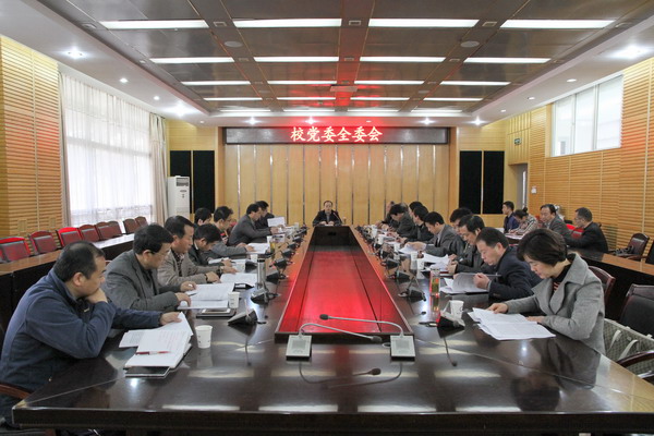 3月22日上午,学校党委在图北会议室召开全体委员会议,审议校第六次党代会2016年年会和校七届教代会第三次会议相关工作报告和会议材料。会议由校长、党委副书记郭永存主持,校领导叶醒狮、王洪、王其东、周峰出席。学校党委全体委员参加会议。