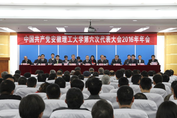 3月25日上午8:00,中共安徽理工大学第六次代表大会2016年年会在校本部九楼报告厅隆重开幕。校领导郭永存、叶醒狮、王洪、王其东、孟祥瑞,校党委常委张海军、吴照明出席开幕式。校党委副书记王洪主持开幕式。