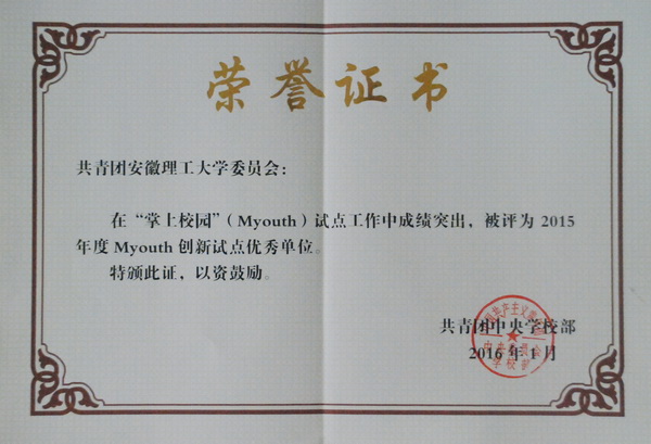 校团委获评“2015年度Myouth创新试点优秀单位”荣誉称号