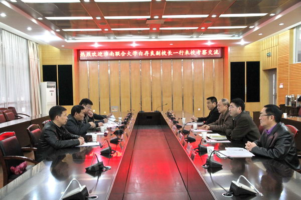 4月6日下午,淮南联合大学副校长白存良一行4人来校交流工作。副校长叶醒狮热情接待了白存良一行。