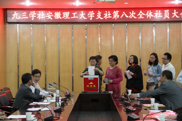 会议进行了换届选举,九三学社市委副主委梁星宣读九三学社淮南市委《关于选举安徽理工大学支社第八届委员会的批复》,彭天好宣读《九三学社安理大支社第八届委员会候选人建议人选简介》,安理大支社第七届委员会副主委王兴阵宣读选举办法和监票人、计票人名单。经全体与会九三学社安理大支社社员的投票选举,王立金、王兴阵、王成军、郑永红、郑钢丰、彭天好当选九三学社安理大支社第八届委员会委员。随后,社市委主持召开安理大支社第八届支委会一次会议,产生了支社主委和副主委,彭天好任支社主任委员,王立金、王兴阵任支社副主任委员。