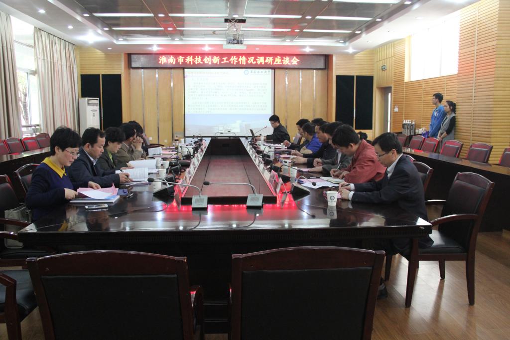 5月10日上午,淮南市人大常委会副主任魏彩华一行5人在淮南市科技局局长吴健等陪同下,赴我校调研科技创新工作。副校长孟祥瑞会见了魏彩华一行,并在图北会议室召开了调研座谈会。