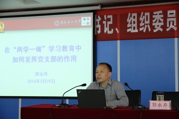 校党委副书记、校长郭永存带头为培训班开讲,围绕基层党组织在“两学一做”中的功能和作用以及“两学一做”学习教育实施方案解读两个方面进行讲解。