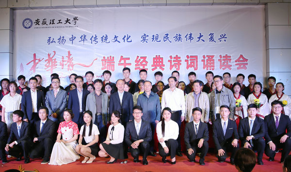习近平总书记曾指出,“不忘历史才能开辟未来,善于继承才能善于创新。优秀传统文化是一个国家、一个民族传承和发展的根本,如果丢掉了,就割断了精神命脉。”5月27日晚,学校在北校区图书馆二楼报告厅举办“中华情”端午经典诗词诵读会。校长郭永存、副校长叶醒狮,党委宣传部、党委组织部、校团委、人文社会科学学院、马克思主义学院等单位主要负责人,各学院党委副书记与500余名师生一起观看了整场演出。